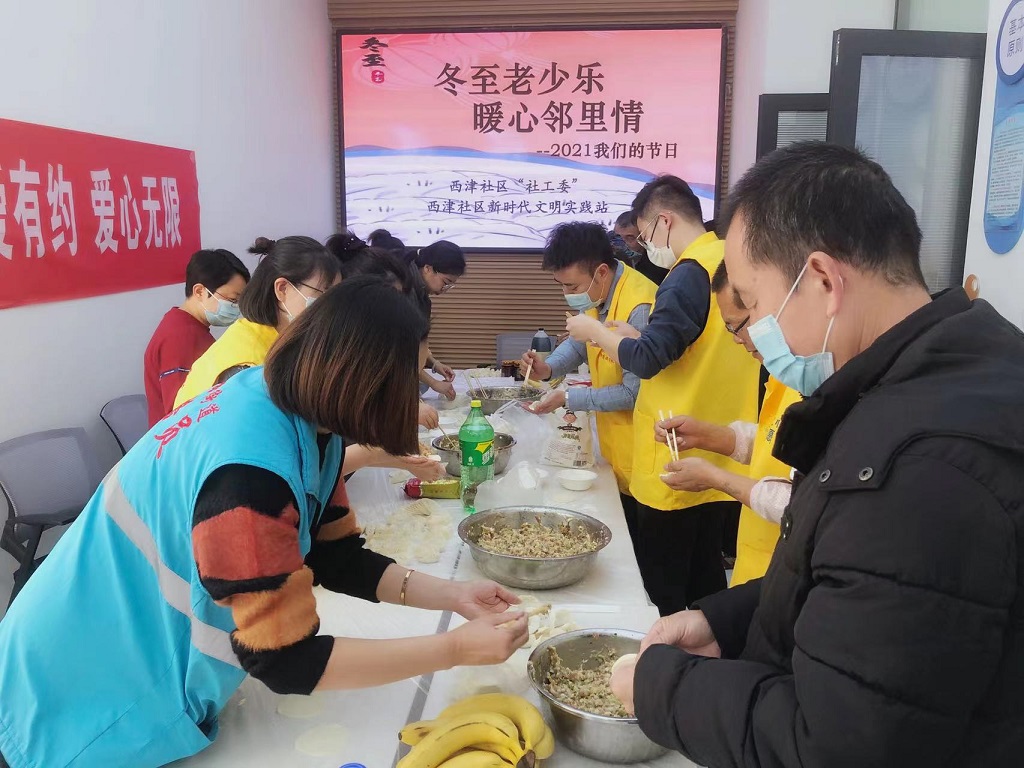 为了推动“我为群众办实事”实践运动取得实效,,让失独家庭的群众过上一个温暖愉快的冬至节,,12月21日,,甘肃yl6776永利集团集团自愿者效劳队联合敦煌路街道西津社区,,组织辖区失独家庭11名住民群众举行了“冬至老小乐 暖心邻里情”运动,,为他们送上了一道温暖祥和的饺子“盛宴”。。