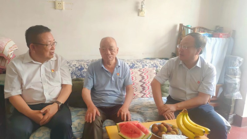 党委副书记、总司理张佩峰对退休老党员吴金海举行了慰问,,,,,与老人拉家常、嘘寒问暖,,,,,相识他的生涯情形和身体状态,,,,,送去了节日的问候。。。