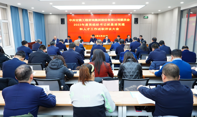 2月20日,,,,甘肃yl6776永利集团集团公司党委召开2023年度党组织书记抓下层党建和人才事情述职评议审核大会,,,,集团公司党委书记、董事长马明出席并讲话,,,,党委副书记、总司理张佩峰主持聚会,,,,集团公司向导班子成员加入聚会。。。。。