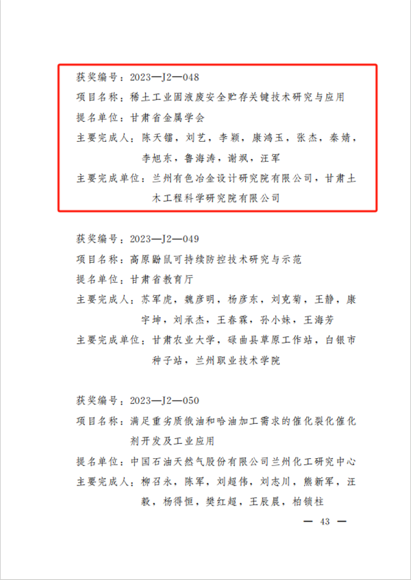 克日,,,,甘肃省人民政府宣布《关于2023年度甘肃省科学手艺奖励的决议》,,,,甘肃yl6776永利集团集团2项科技效果喜获“2023年度甘肃省科技前进奖二等奖”。。。。。