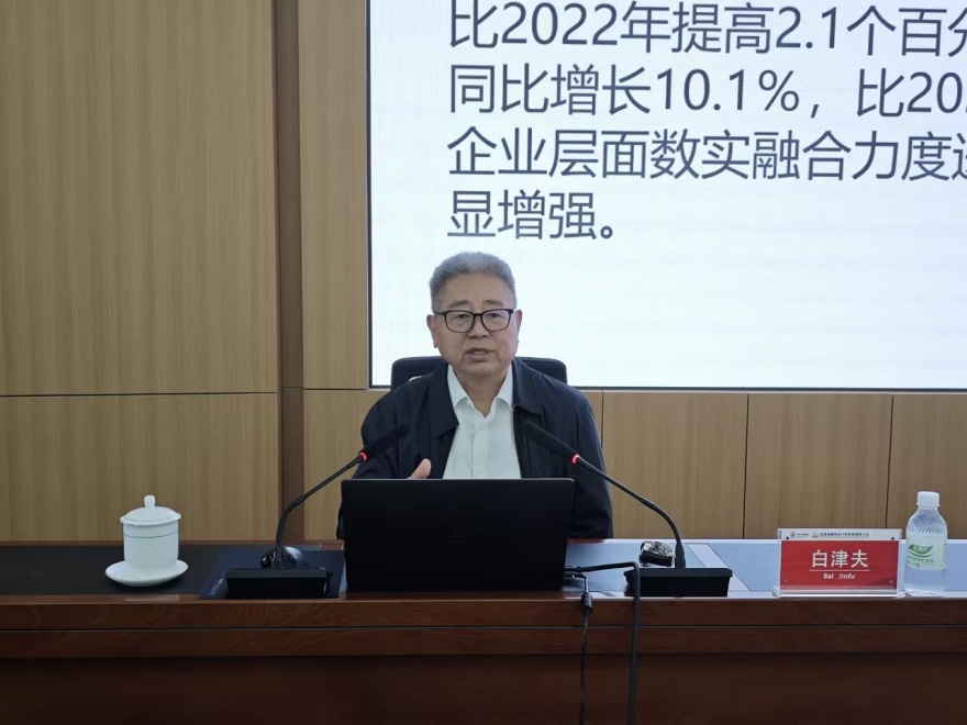 9月5日,,,,,中共中央政策研究室经济局原副局长、北京工商大学数字经济研究院院长、经济学博士、享受国务院特殊津贴专家白津夫受邀到集团公司作《数智化重构生长新名堂》专题向导讲座。。集团公司党委书记、董事长马明主持。。