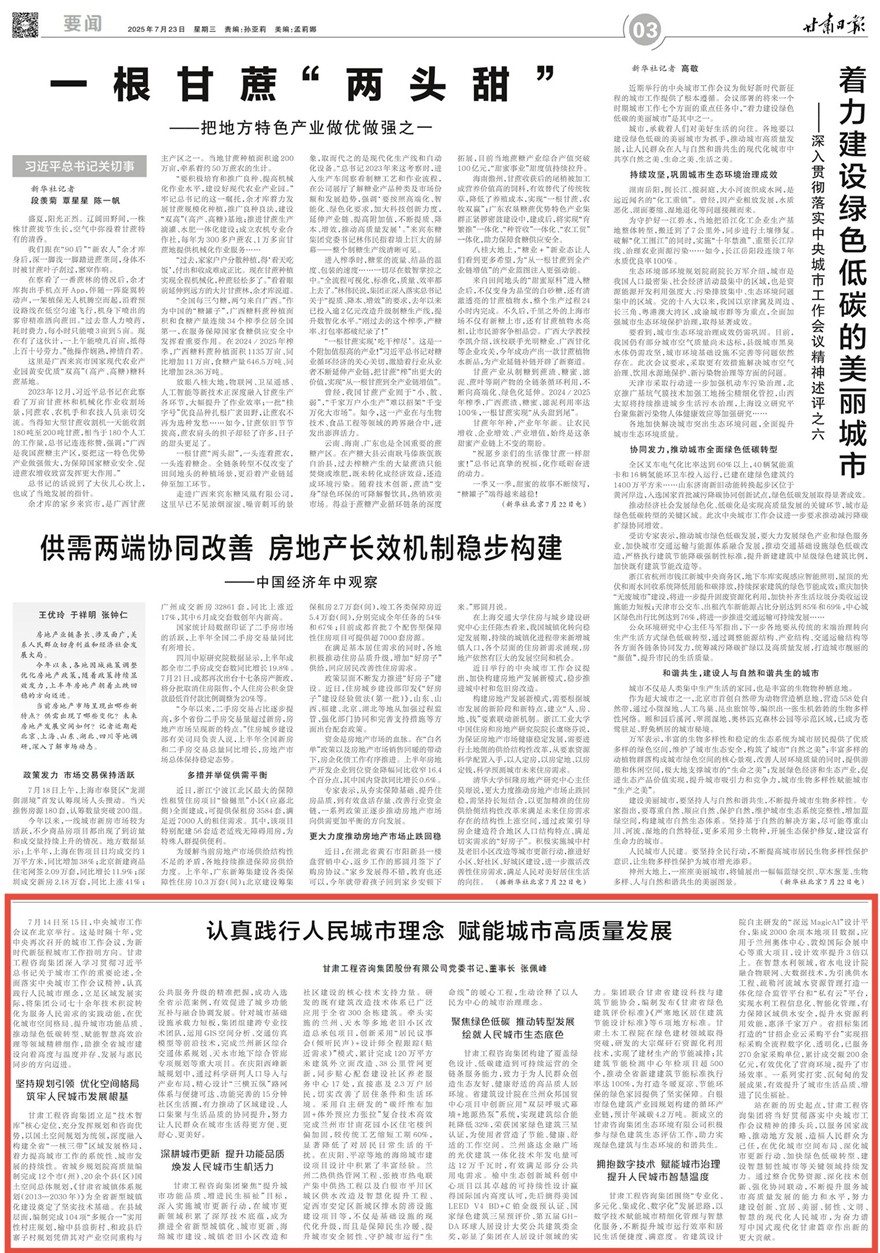 7月14日至15日,,,,中央都会事情聚会在北京举行。。这是时隔十年,,,,党中央再次召开的都会事情聚会,,,,为新时代新征程都会事情指明偏向。。甘肃yl6776永利集团集团深入学习贯彻习近平总书记关于都会事情的主要叙述,,,,周全落实中央都会事情聚会精神,,,,认真践行人民都会理念,,,,驻足区域生长现实,,,,将集团公司七十余年手艺积淀转化为效劳人民需求的实践动能,,,,在优化都会空间名堂、提升都会功效品质、推动绿色低碳转型、赋能智慧高效治理等领域精耕细作,,,,助推全省都会建设向着高度与温度并存、生长与惠民同步的偏向迈进。。