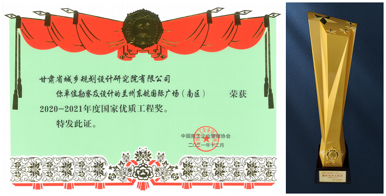 ¸ÊËàʡԫÏçÍýÏëÉè¼ÆÑо¿Ôº¿±Ì½¡¢Éè¼ÆµÄ¡°À¼Öݶ«º½¹ú¼Ê¹ã³¡£¡£¨ÄÏÇø£©ÏîÄ¿¡±ÈÙ»ñ¡°2020¡ª2021Äê¶È¹ú¼ÒÓÅÖʹ¤³Ì½±¡±¡£¡£´Ëǰ£¬£¬£¬£¬¸ÃÏîÄ¿ÒÑÈÙ»ñ2020Ä깤³Ì½¨ÉèÏîÄ¿ÂÌɫ֯×÷Éè¼ÆË®Æ½ÆÀ¼ÛÈýµÈЧ¹û¡¢2020Äê¶È¸ÊËàÊ¡ÓÅÒ칤³Ì¿±Ì½Éè¼ÆÈýµÈ½±µÈ¶àÏîÉùÓþ¡£¡£