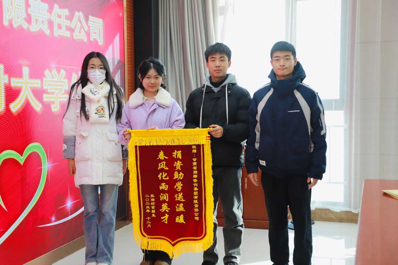 省招标咨询集团资助的天水张家川县张棉驿乡张棉村兰大受助学生代表,,,,,到省招标咨询集团送上锦旗和谢谢信,,,,,对公司恒久以来资助、体贴他们学业的善举表达联名谢谢。。。。