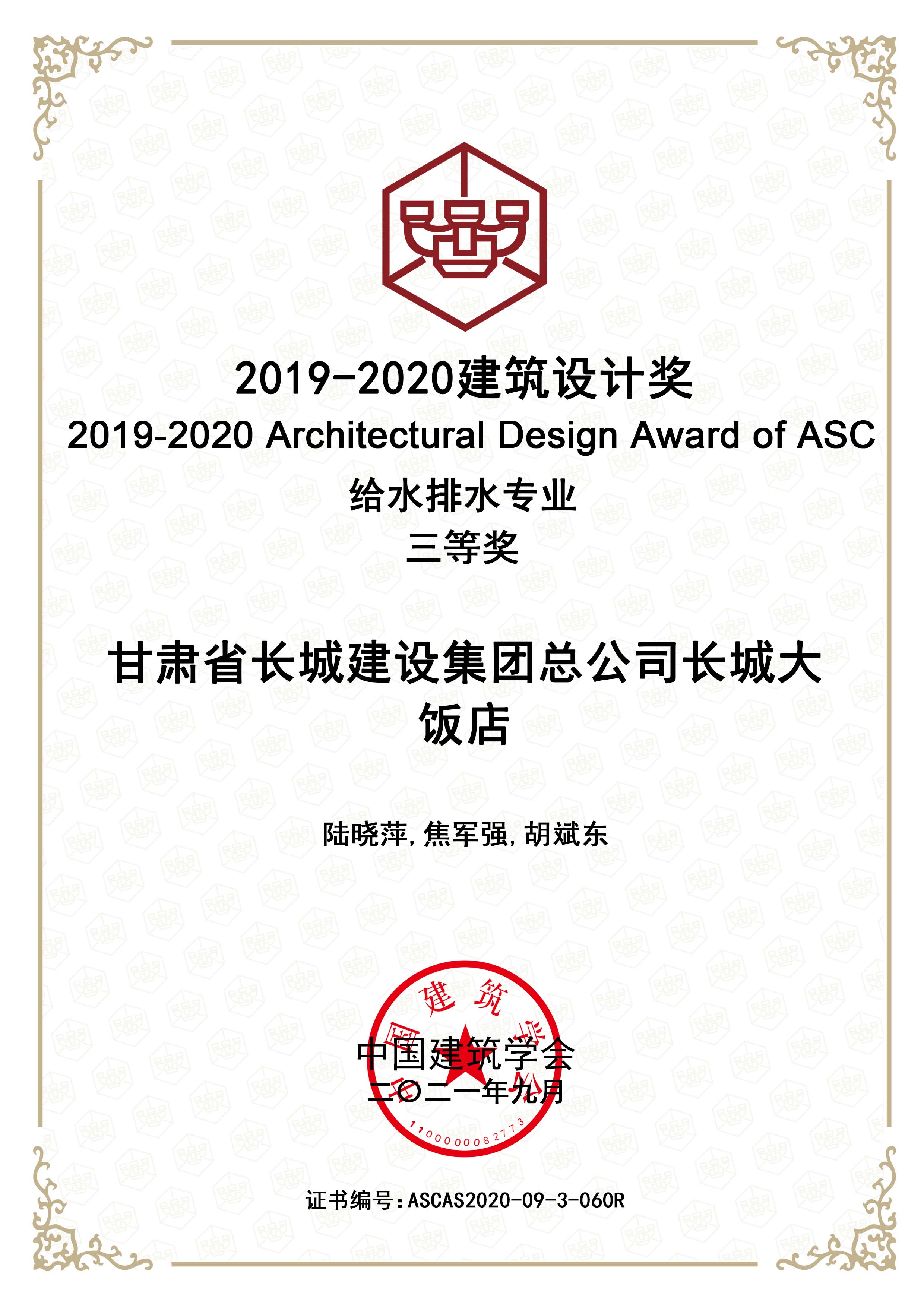 2019—2020修建设计奖给排水专业三等奖